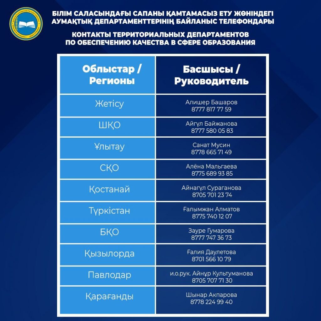 КОНТАКТЫ ТЕРРИТОРИАЛЬНЫХ ДЕПАРТАМЕНТОВ ПО ОБЕСПЕЧЕНИЮ КАЧЕСТВА В СФЕРЕ ОБРАЗОВАНИЯ И РЕГИОНАЛЬНЫХ УПРАВЛЕНИЙ ОБРАЗОВАНИЯ
