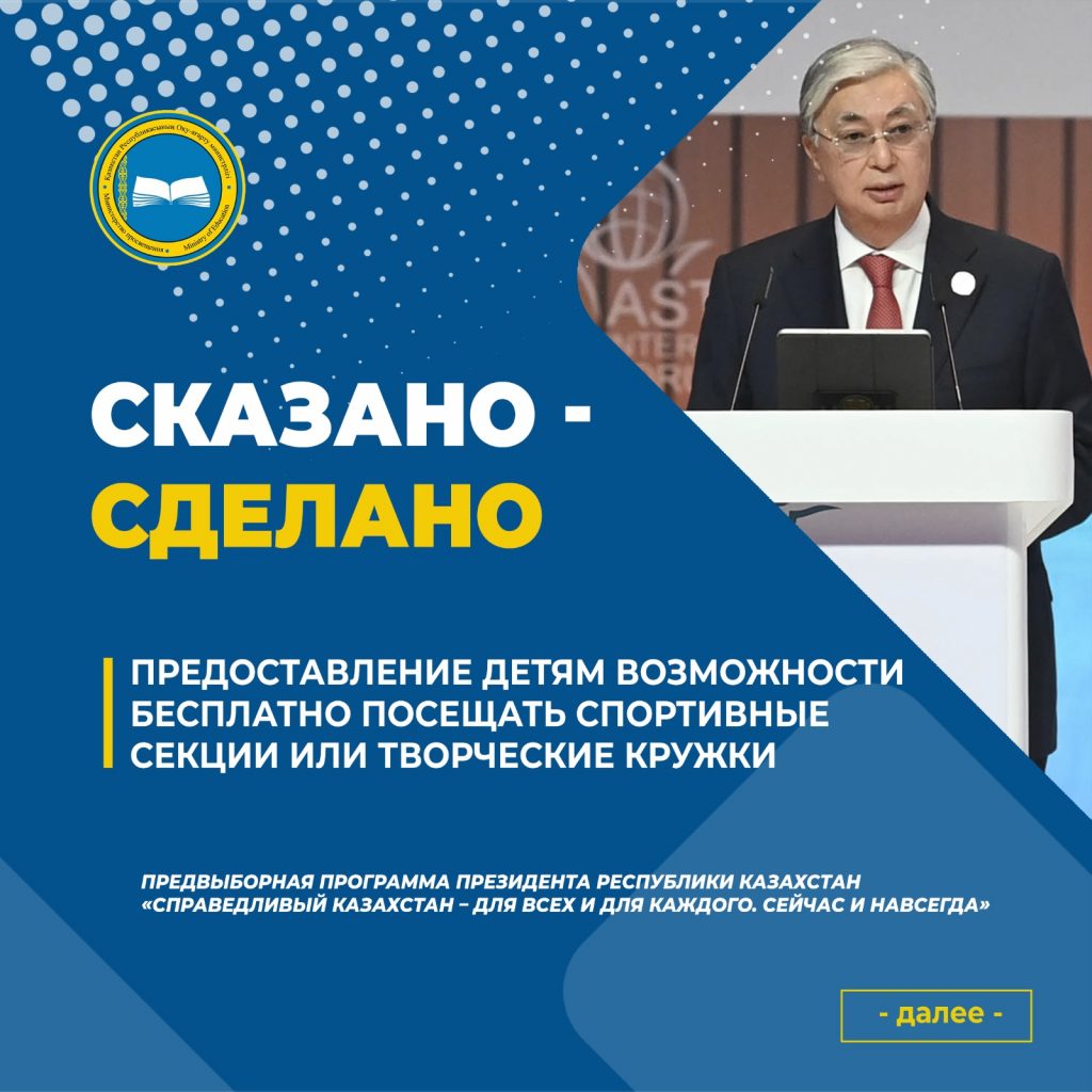 (Предвыборная программа Президента Республики Казахстан «Справедливый Казахстан – для всех и для каждого. Сейчас и навсегда»)