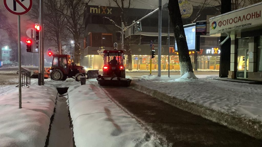 В городе Алматы 16 декабря с 14:10 до 03:00 17 декабря прошел снегопад, в результате которого выпало 9 см снега. С 16:30 по 19:00 16 декабря была произведена посыпка противогололедных материалов при помощи 121 пескоразбрасывателя, использовано 1416 тонн ПГМ. С 02:00 ночи началось сгребание и подметание снега со дорог. В 05:00 часов началась предупредительная обработка основных дорог жидким противогололедным реагентом. После этого была организована работа по очистке тротуаров, мест общего пользования и остановок общественного транспорта. Ночью было задействовано 354 единиц спецтехники и 421 дорожный работник, в дневное время — 344 единицы спецтехники и 840 дорожных рабочих. Акиматы районов организовали круглосуточное дежурство по контролю работ по уборке снега. По прогнозу РГП «Казгидромет» дневная температура воздуха составит -1…-3 градуса.