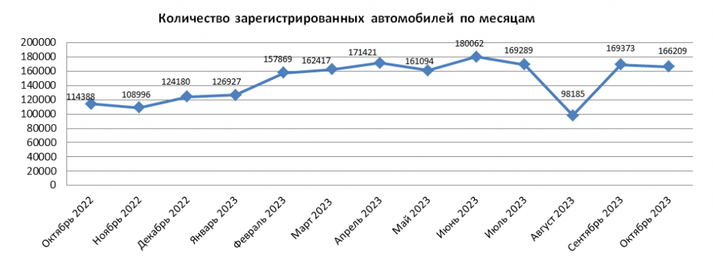 166,2 тыс. единиц автотранспортных средств поставлено на учет в октябре