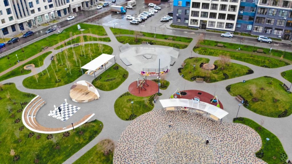 Еще один сквер на месте ЖК с фитнес-центром появился по проспекту Туран.