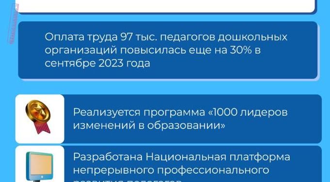 • Оплата труда 97 тыс. педагогов дошкольных организаций повысилась еще на 30% в сентябре 2023 года