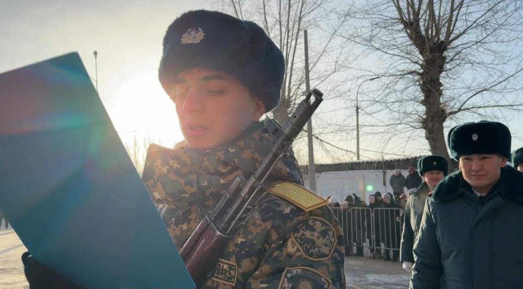 Церемония присяги прошла в субботу на базе воинской части 5518. Новобранцев призвали в ряды воинской части 5518 в Усть-Каменогорске в ноябре, и перед началом службы они проходили курс молодого бойца.