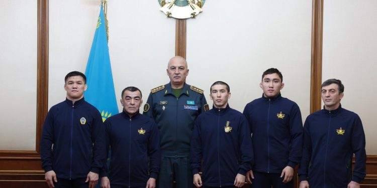 В оборонном ведомстве прошло награждение спортсменов, показавших отличные результаты на Чемпионате мира по борьбе среди военнослужащих в Баку. Ведомственное чествование проходило в связи с успехами армейских спортсменов на международном уровне. Об этом сообщает Optimism.kz.