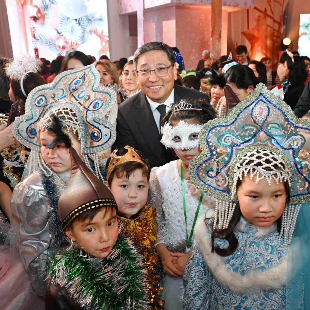 Гостей ёлки от имени Главы государства Касым-Жомарта Токаева поздравил аким Алматы Ерболат Досаев, пожелав крепкого здоровья, успехов и исполнения в Новом году всех их желаний.
