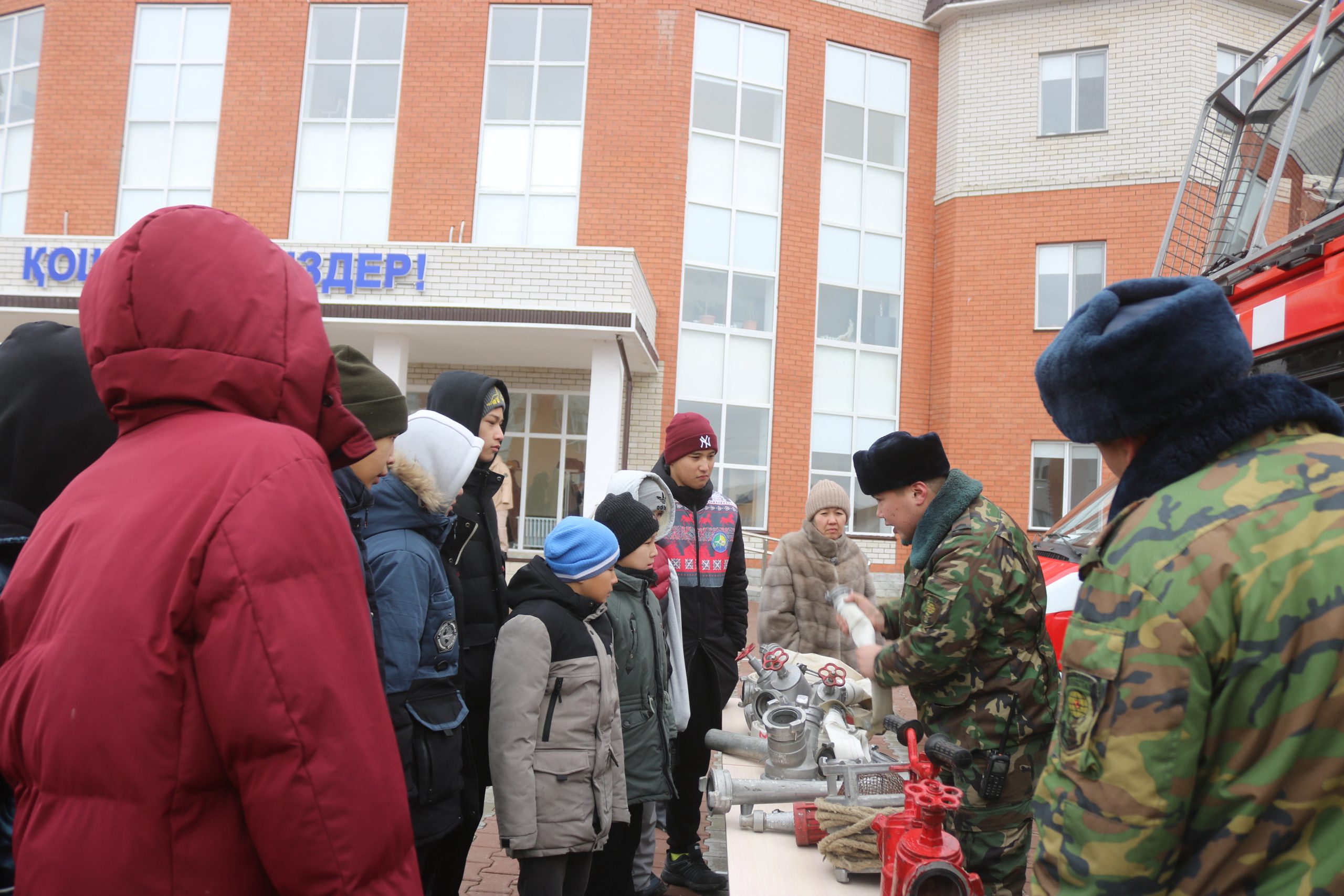 Заместитель начальника Департамента подполковник Руслан Шариев рассказал об особенностях одного дня, проведенного с учеником 8 класса данной школы Нурасылом Талгатовым. Также школьников призвали к строгому соблюдению требований правил безопасности, ознакомили с деятельностью профессии спасателя.