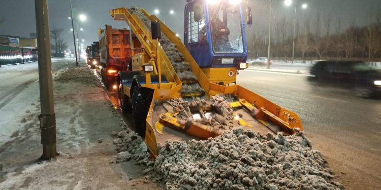 В Астане сегодня выпали осадки в виде снега с дождем, сообщает Optimism.kz. Коммунальные службы задействовали более 1000 единиц спецтехники и около 700 дорожных рабочих для очистки улиц. Работа служб усиленно проводится круглосуточно, с интенсификацией в вечернее и ночное время, а также корректировкой маршрутов снегоуборки. По правилам, в первую очередь очищаются участки с интенсивным движением, чтобы избежать заторов на дорогах, затем участки со средней интенсивностью. С начала зимнего периода вывезено около 800 тыс. кубометров снега. По данным Казгидромета в столице снег с дождем, порывы ветра превышают 20 м/с. Автомобилистов просят быть внимательными на дороге и соблюдать скоростной режим. (Фото: Акимат города Астаны)