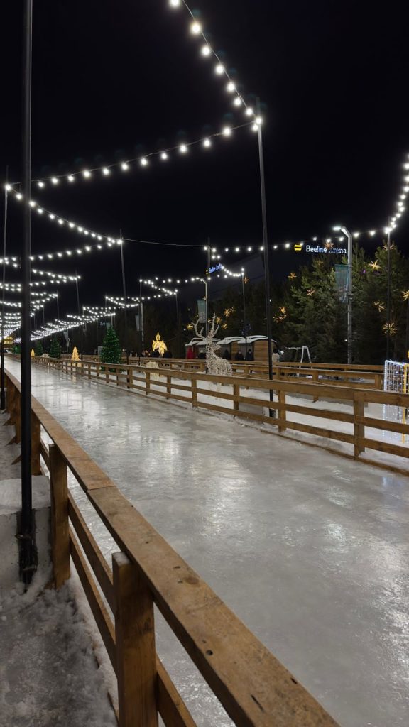 Напомним, что это первый линейный каток в Астане. Благодаря своей длине в 290 метров в одну сторону каток считается самым длинным в столице. Выход на лед для посетителей со своим инвентарем бесплатный. Возле катка расположены тематические фотозоны, точки обогрева и фудкорты. Также в парке работают горки.