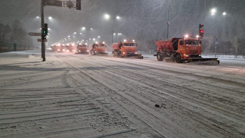 В связи с обильными осадками коммунальщики столицы работают в круглосуточном режиме, очищая улицы города от снега, передает Optimism.kz.