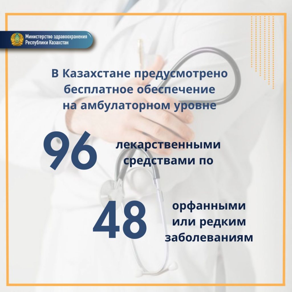 В Казахстане предусмотрено бесплатное обеспечение на амбулаторном уровне 96 лекарственными средствами по 48 орфанными или редким заболеваниям.