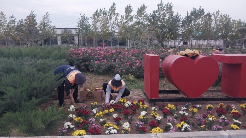 В прошлом году в Туркестане была проведена большая работа по озеленению города, в рамках которой было высажено более 300 тысяч саженцев деревьев и цветов. Также были проведены работы по улучшению благоустройства центральных площадей, скверов и парков.
