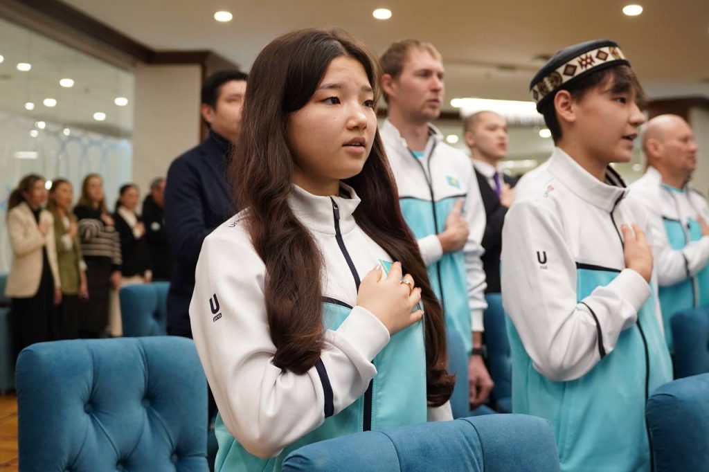 В ходе мероприятие прошло торжественное вручение флага Республики Казахстан знаменосцам. Символ нашей страны на церемонии открытия IV зимних Юношеских Олимпийских играх пронесут кандидат в мастера спорта по шорт-треку, чемпион страны Ерасыл Шынгысхан и мастер спорта РК по конькобежному спорту, чемпионка страны Кристина Шумекова.