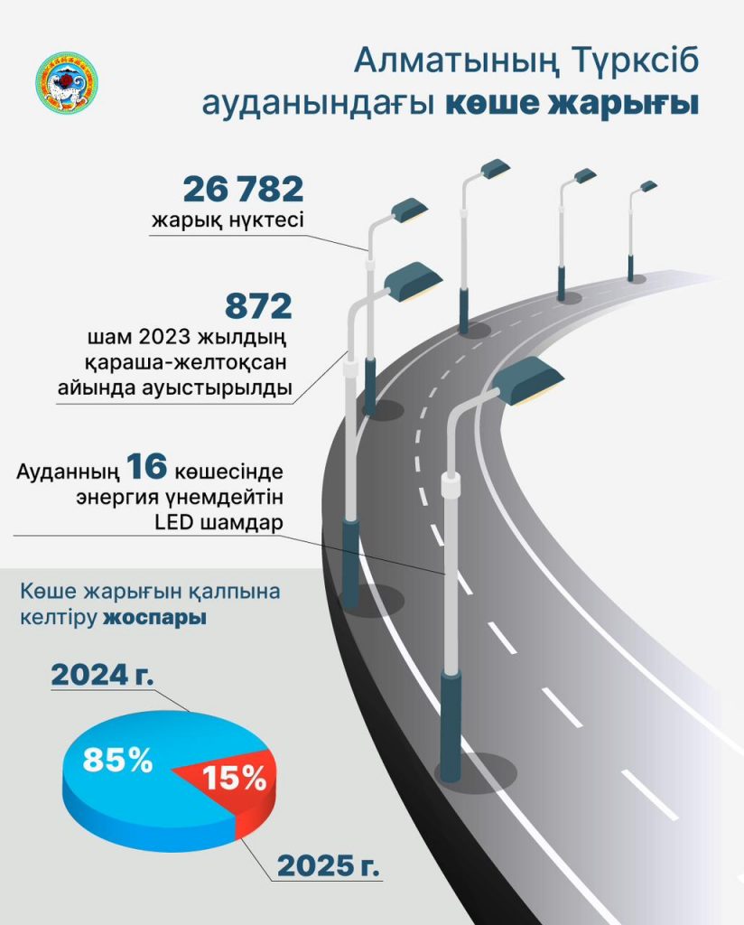 До конца текущего года планируется восстановить 22 760 светоточек из существующих 26 782 в Турксибском районе. Об этом сказал аким г. Алматы Ерболат Досаев в ходе встречи с жителями. Таким образом, в 2024 году планируется восстановить уличное освещение по району до 85%, в 2025 году — до 100%.