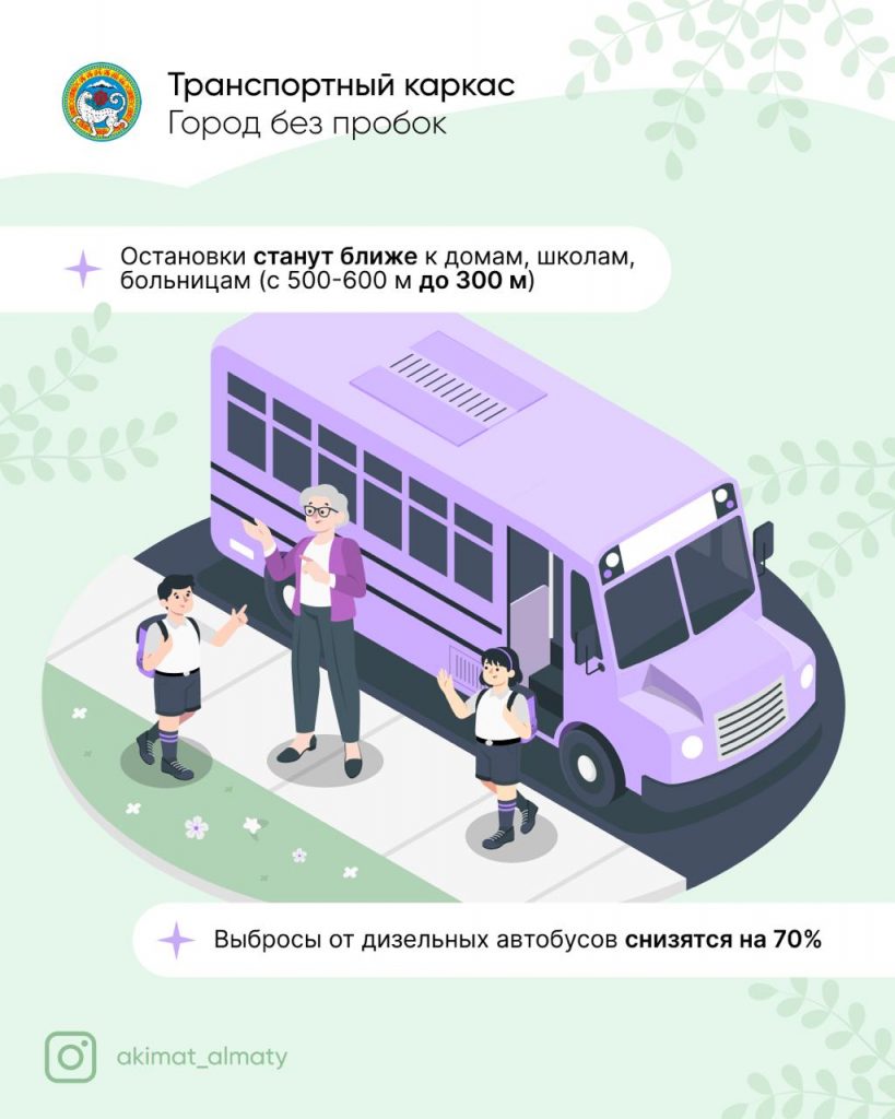 В акимате Алматы подчеркнули, что в 2025-2026 годах будет переходный этап, включающий формирование сети транспортного каркаса из 14 коридоров. Первые значимые результаты внедрения транспортного каркаса можно ожидать по итогам завершения первых двух этапов реализации транспортного каркаса к концу 2026 года. К этому времени парк автобусов будет переведен на газовые и электрические, ожидается запуск первой линии ЛРТ, открытие станции метро «Калкаман» и строительство трех транспортно-пересадочных узлов на западном, северном и восточном направлениях.