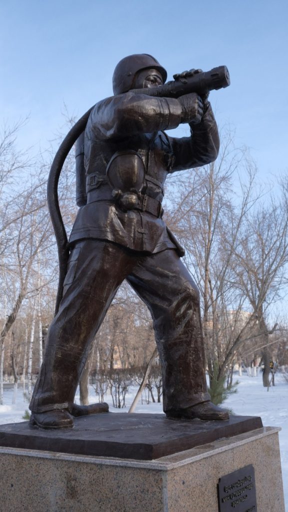 Памятник в честь героически погибшего столичного пожарного Аскара Забикулина установили на аллее в близи центральной площади в Кокшетау.