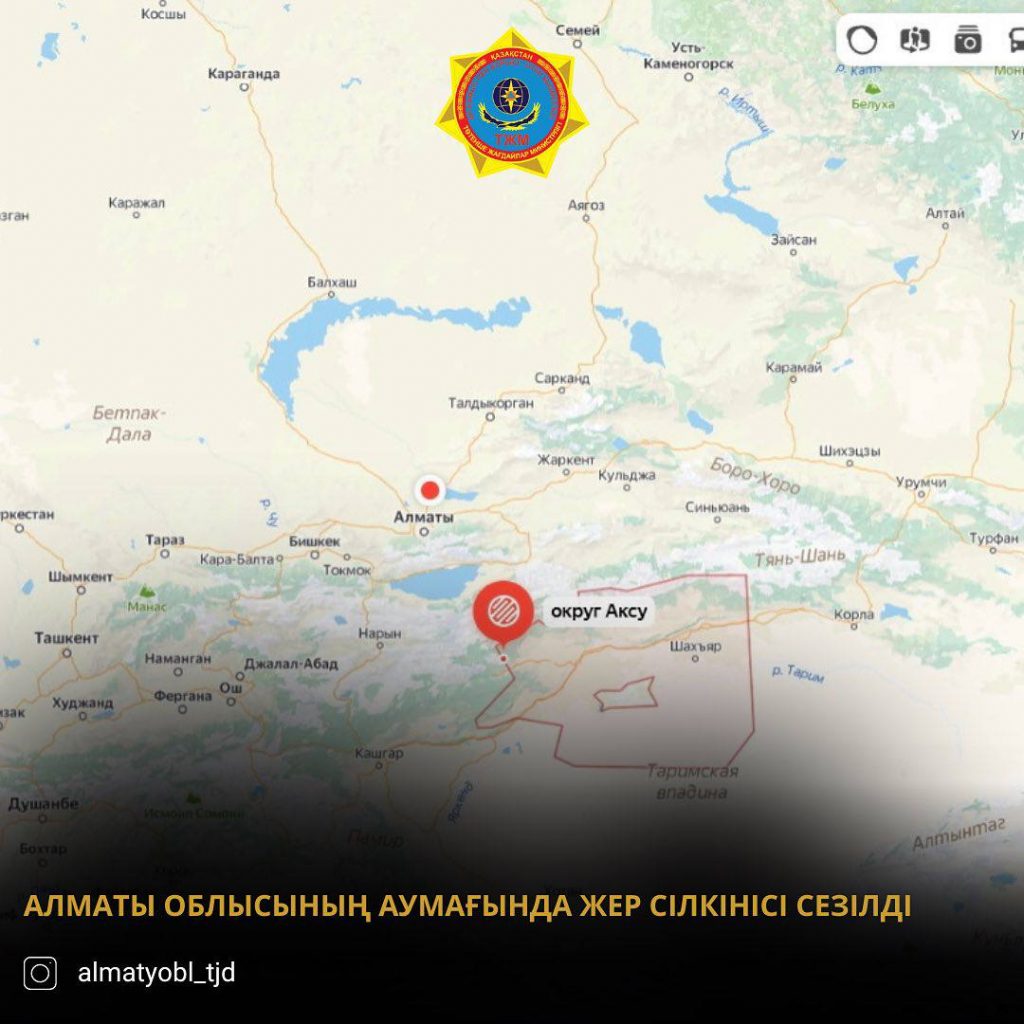 В ночь на 23 января 2024 года, Алматы пережило сильное землетрясение, ощутимое не только в столице, но и в соседних регионах Казахстана. Национальный научный Центр сейсмологических наблюдений и исследований сообщил, что эпицентр землетрясения находится в 264 км на юго-восток от города, на территории Кыргызстана. Землетрясение получило энергетический класс 15.1, магнитуда MPV составила 6.7, а глубина достигла 65 км. В Алматы ощутимость землетрясения оценена в 5 баллов по шкале МSК-64, в Шымкенте — в 2 балла.