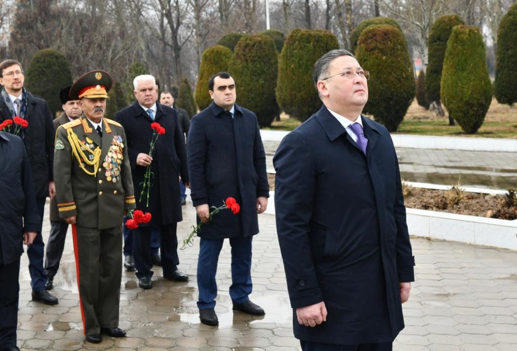 В ходе визита в Таджикистан делегация МИД Казахстана возложила цветы к Монументу погибшим войнам-казахстанцам. Представители таджикской стороны и руководство столичной мэрии также почтили память казахстанских героев. Глава внешнеполитического ведомства Казахстана выразил благодарность за бережное отношение к монументу и надеется на дальнейшее сотрудничество в деле сохранения памяти о подвигах граждан. Монумент, посвященный солдатам, погибшим на таджикско-афганском участке, был возведен в 2007 году на территории парка культуры и отдыха им. Абулькасима Фирдавси.