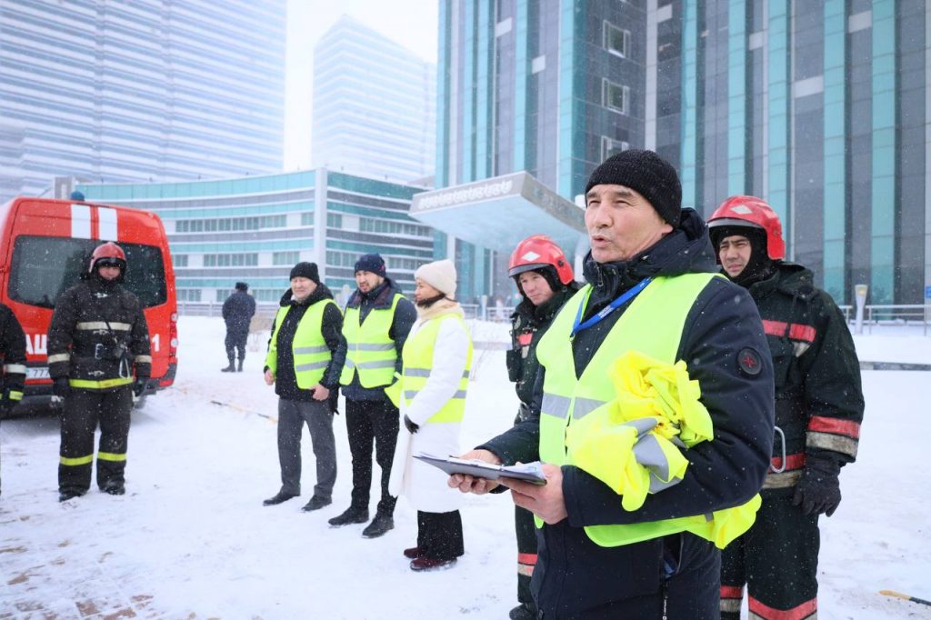 26 января огнеборцы ДЧС г. Астаны провели пожарно-тактические учения в бизнес центре «Emerald Tower» . По условиям учения в конференцзале на 25 этаже бизнес центра, произошло возгорание мебели и оргтехники из-за короткого замыкания электропроводки. Объявляется повышенный ранг вызова и на место происшествия направляются пожарные подразделения. Густой черный дым распространяется внутри здания, и пожарные подразделения приступают к тушению пожара, а также одновременно ведут поиск пострадавших. Пожар был полностью ликвидирован меньше чем за час.