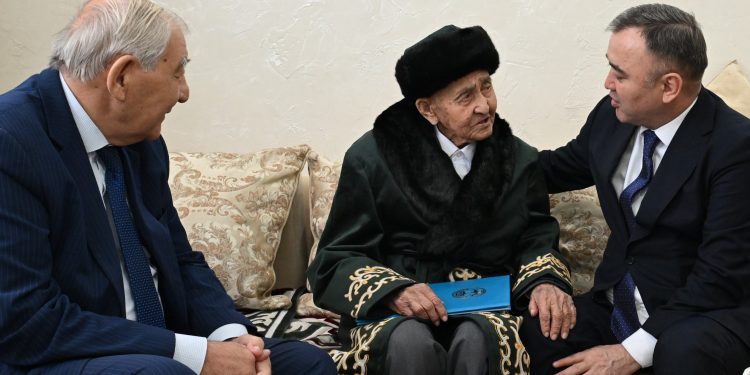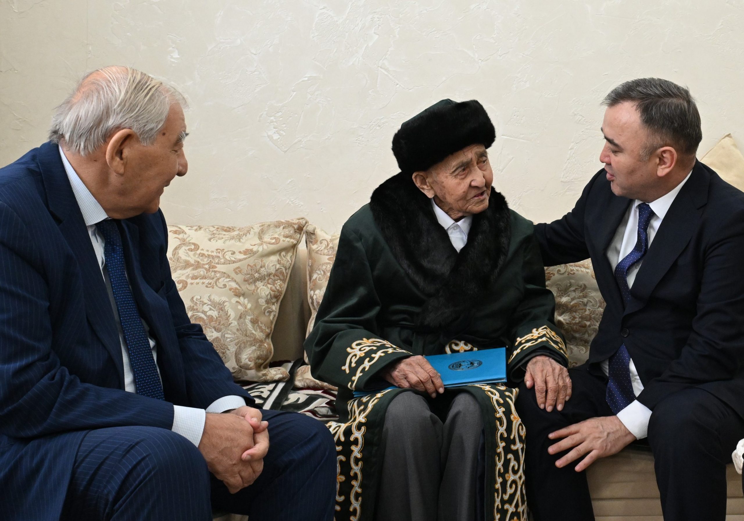 Поздравив ветерана со 100-летним юбилеем, Марлен Капашевич накинул ему на плечи традиционный национальный чапан и вручил поздравительное письмо за подписью акима области Бейбита Исабаева, в котором отмечены воинские и профессиональные заслуги ветерана: «Таких, как Вы граждан, добросовестно выполнявших свой воинский долг перед Родиной, много и упорно трудившихся, мы всегда ставим в пример нынешнему поколению. Ваши героические поступки, плодотворный труд, личные человеческие качества навсегда останутся в народной памяти, ваш жизненный путь – образец для подражания для всех нас», — говорится в поздравлении.