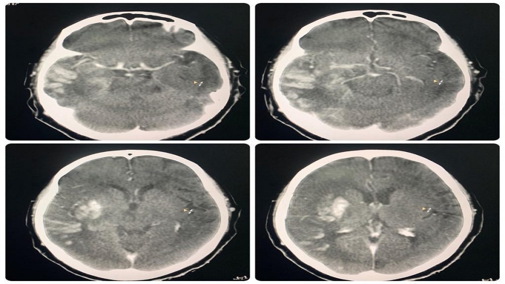 «Пациентка поступила с клинико-неврологической симптоматикой ишемического инсульта в бассейне правой средней мозговой артерии: левосторонний гемипарез, центральный парез лицевой мускулатуры слева, нарушение речи — дизартрия. Время начала заболевания 1 час. В экстренном порядке проведена операция — селективная церебральная ангиография, где выявлена картина острой окклюзии (тромбоз/тромбоэмболия) правой внутренней сонной артерии на уровне офтальмического сегмента»,- рассказывает заведующий отделением сосудистой нейрохирургии ГКБ №7 Алматы Рауан Кастей.