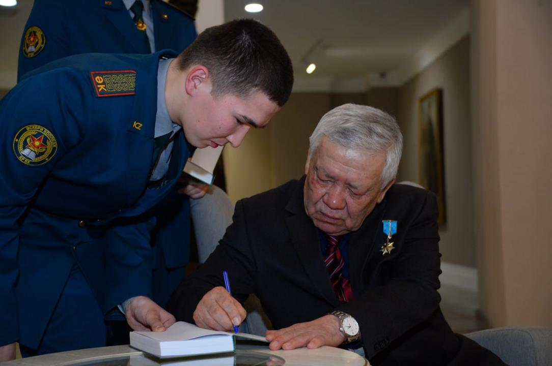 В ходе встречи Бахытжан Ертаев также подарил воспитанникам Военного колледжа имени Сагадата Нурмагамбетова несколько экземпляров книги с автографом о своем жизненном пути «Тағдыр», написанной Маратом Жүніс-Беком.