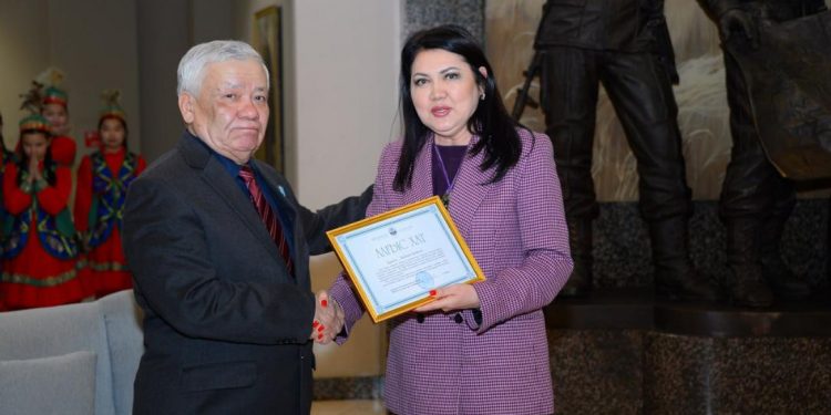 Начальник Государственного военно-исторического музея Ляззат Альжан поблагодарила гостей за ценный подарок для музея и вручила им благодарственное письмо.