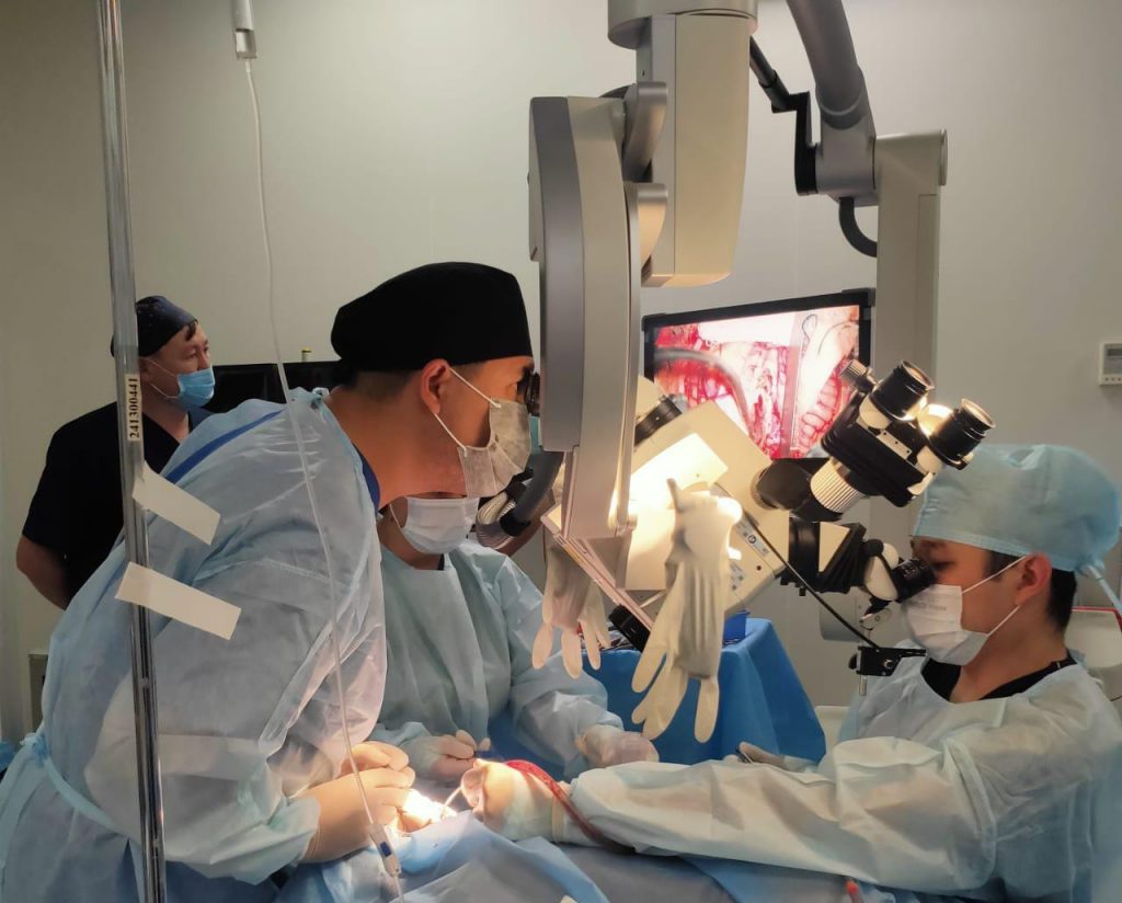 «Болезнь Мойя-Мойя -редкое заболевание. Встречается у одного из тысячи детей. Из-за развития заболевания кровеносные сосуды головного мозга блокируются, что может привести к инсульту. При таком заболевании, которое считается опасным для жизни пациента, преобладает риск стать инвалидом. Мы предотвращаем такую опасность во время операции, хирургическим путем лечим закупоренные сосуды головного мозга», — говорит заместитель главного врача по хирургической работе Ержан Ерманович.