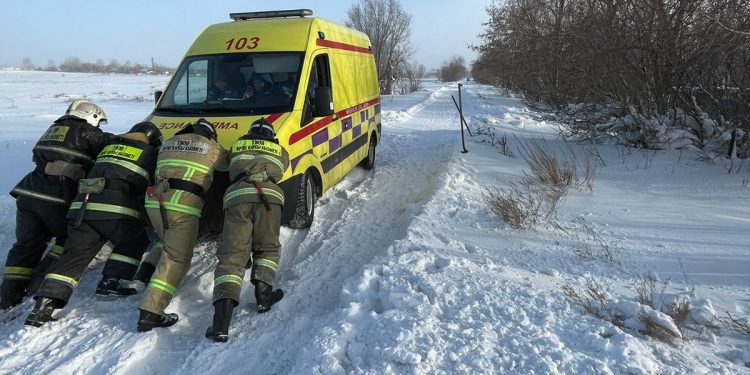 14 февраля в 05.43ч. в ДЧС Карагандинской области поступило сообщение о необходимости оказания помощи по вызволению автомашины скорой помощи, которая застряла в снежном заносе на автодороге между станцией Караганда-Сортировочная и п. Кокпекты.