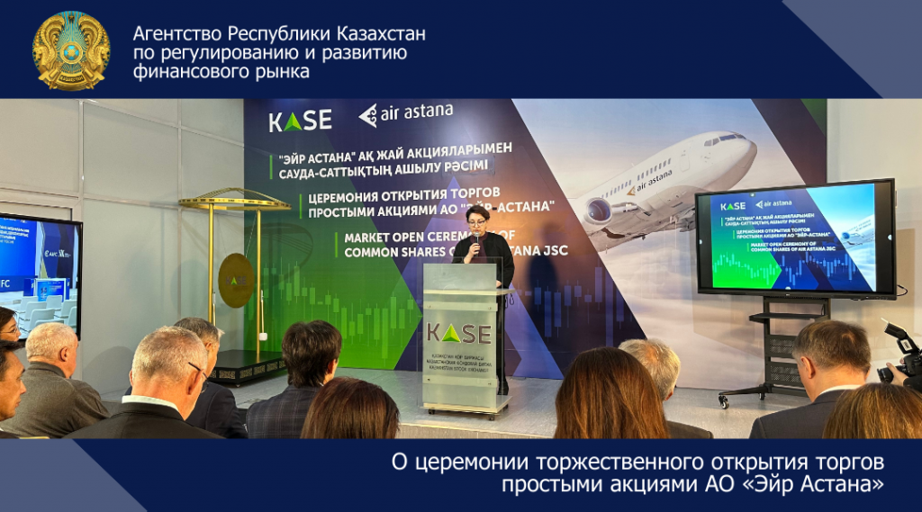 15 февраля 2024 года Заместитель Председателя Мария Хаджиева приняла участие на Казахстанской фондовой бирже в церемонии открытия торгов акциями национального авиаперевозчика Эйр Астана в рамках публичного первичного размещения (IPO).