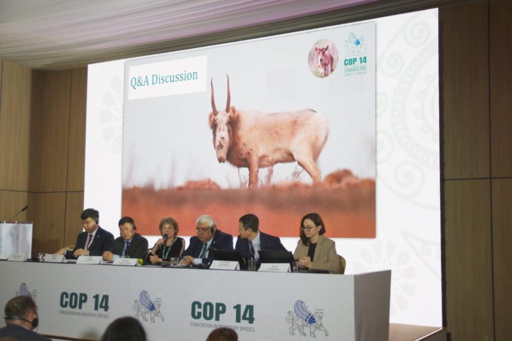 В рамках 14-й Встречи Сторон Конвенции по мигрирующим видам диких животных (CMS COP14) в г. Самарканде состоялось мероприятие «Признание и развитие успеха трансграничного сотрудничества по восстановлению антилопы сайгака в Центральной Азии». В центре внимания — успех в восстановлении численности сайгака в Казахстане и необходимость продолжения усилий в других странах ареала, особенно в контексте усиления трансграничного сотрудничества в регионе.
