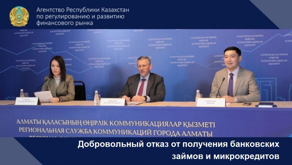 На брифинге с докладом касательно мер Агентства Республики Казахстан по регулированию и развитию финансового рынка (далее – Агентство) по разработке дополнительного механизма добровольного отказа граждан-физических лиц от получения банковских займов и микрокредитов, выступил Александр Терентьев, Директор Департамента защиты прав потребителей финансовых услуг Агентства.