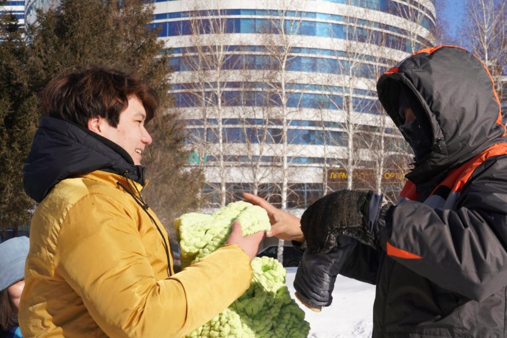 «Сегодня нам раздали теплые шарфы, которые согревают, особенно в морозные дни. Приятно получать поддержку. Спасибо волонтерам за заботу и неоценимую помощь», — поблагодарил один из дорожных работников Кайрат Ахметов.