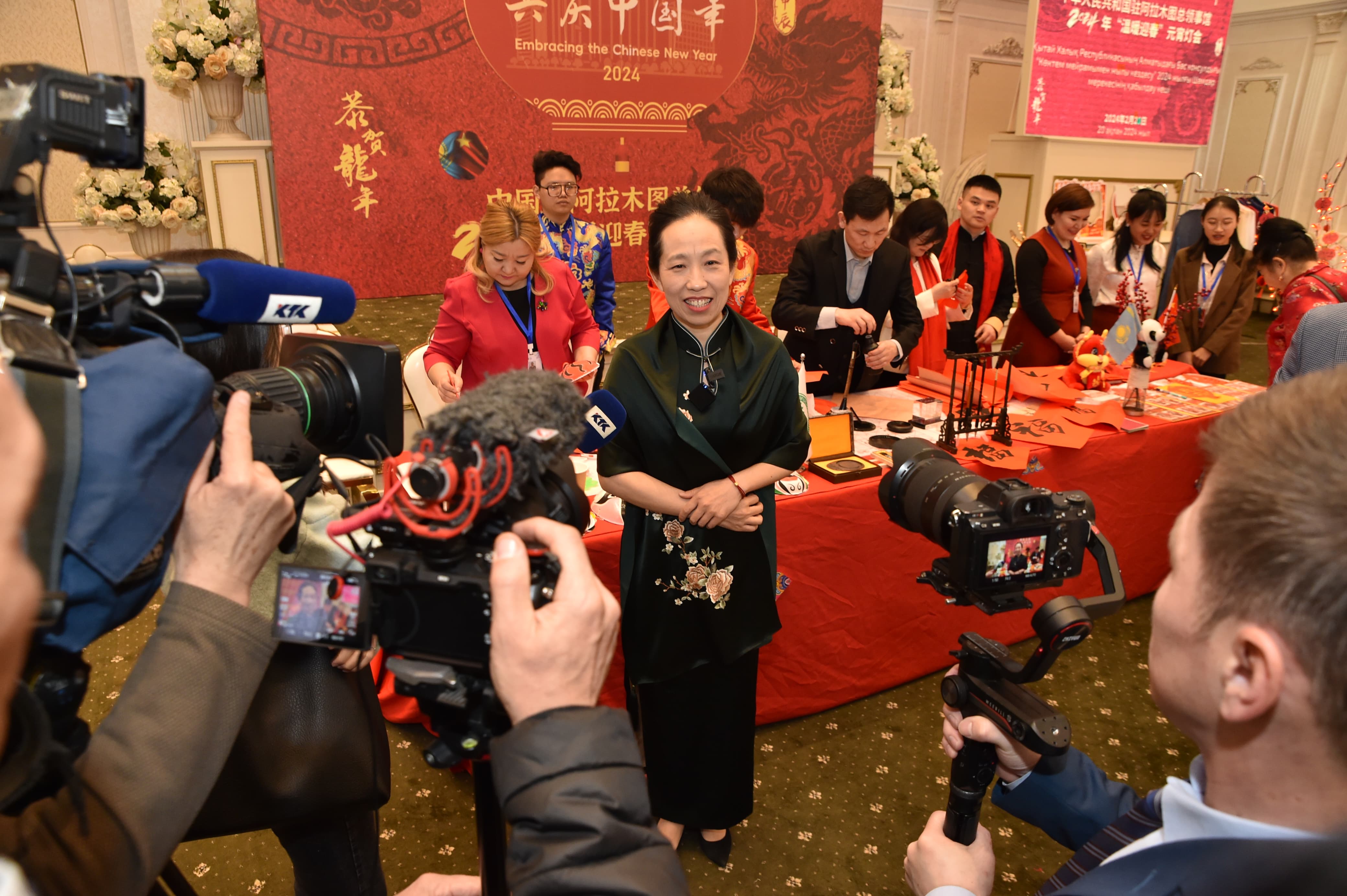 В зале царила радостная атмосфера праздника, а художественные представления, такие как танец дракона, танец льва, танец вееров, вызвали громкие аплодисменты у гостей приема. Также были организованы зоны с традиционными китайскими угощениями, играми и примеркой традиционной одежды ханьфу.