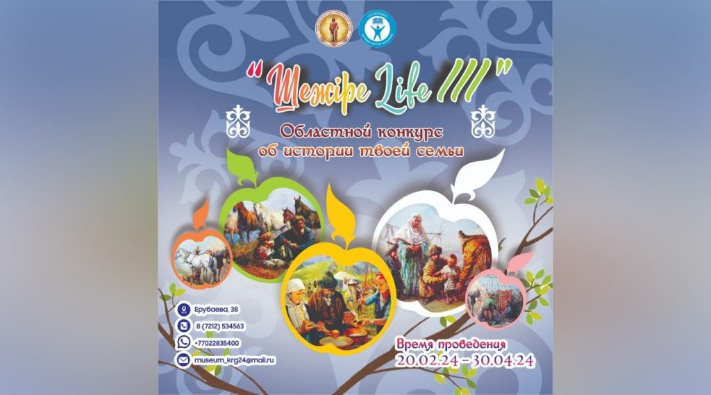 Карагандинский областной историко-краеведческий музей совместно с научно-исследовательским центром «Тұлғатану» объявляют о проведении конкурса «Шежiре-Life III» под названием «История моей семьи» среди учащихся школ и колледжей в возрасте от 10 до 20 лет. Участники могут принять участие в нескольких номинациях, подать заявки и конкурсные работы до 30 апреля по электронной почте museum_krg24@mail.ru с пометкой «Конкурс». В конкурсе определены три возрастные категории. Итоги конкурса будут объявлены 18 мая, в Международный день музеев. Участники получат сертификаты, а победителям будут вручены дипломы и призы. Их работы также будут опубликованы на сайтах музея и научно-исследовательского центра. Дополнительную информацию можно получить по указанным телефонам.