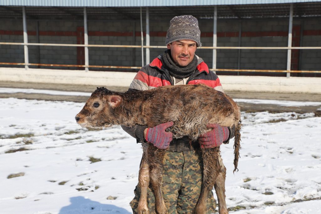 Что касается производства мяса, то вес одного годовалого бычка породы «Алатау», поставленного на откорм, доходит до 500 килограмм. К тому же животноводы с разных уголков приобретают телят для разведения. К примеру, в момент посещения фермы на свет появился еще один теленок, ему всего час отроду, но он уже отличается крепким телосложением. Стоит также отметить, что благодаря субсидированию деятельности племцентров со стороны государства фермеры обращаются в племенной центр, чтобы на бесплатной основе получить услуги по искусственному осеменению коров. В дальнейших планах руководителя племенного центра заняться разведением казахской белоголовой породы КРС. Всего в племцентре создано 15 постоянных рабочих мест.