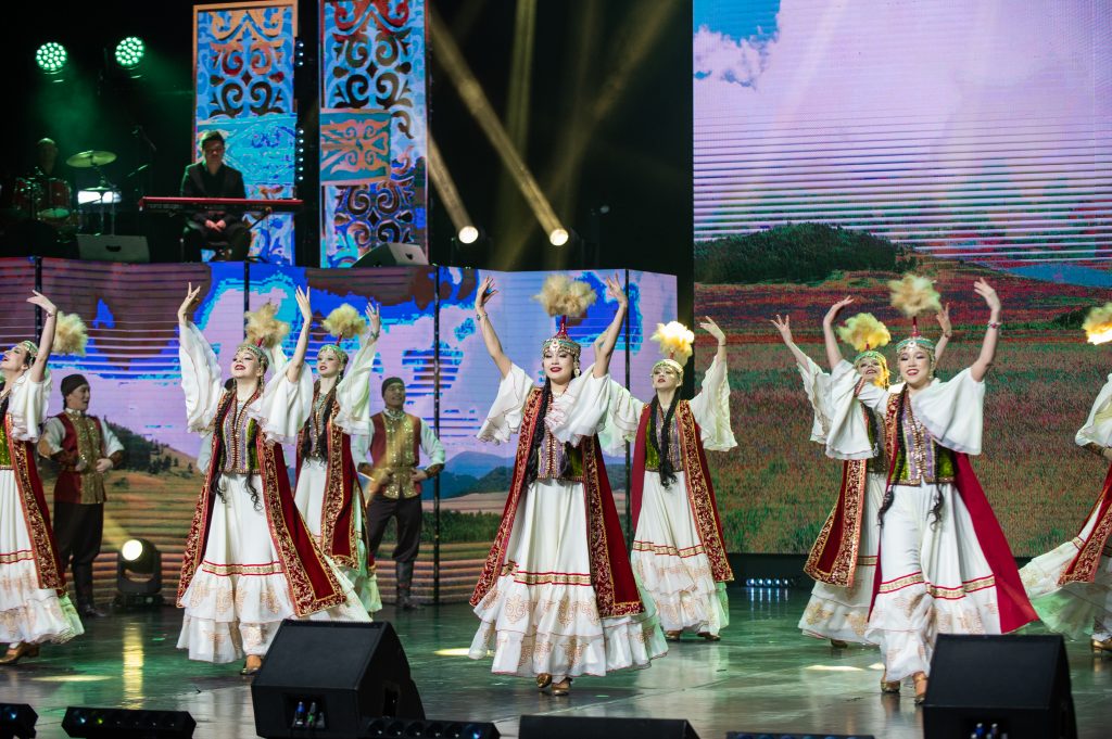 Мэтрами и молодыми исполнителями были исполнены массовые и сольные хореографические композиции, инструментальные и вокальные номера, в числе которых казахский танец «Күй шашу», азербайджанский народный танец «Яллы», внесенный Всемирной организацией ЮНЕСКО в список нематериального культурного наследия мира, немецкая полька «У деревянного трактира», попурри из песен народа РК, уйгурские, корейские, татарские танцы и др.