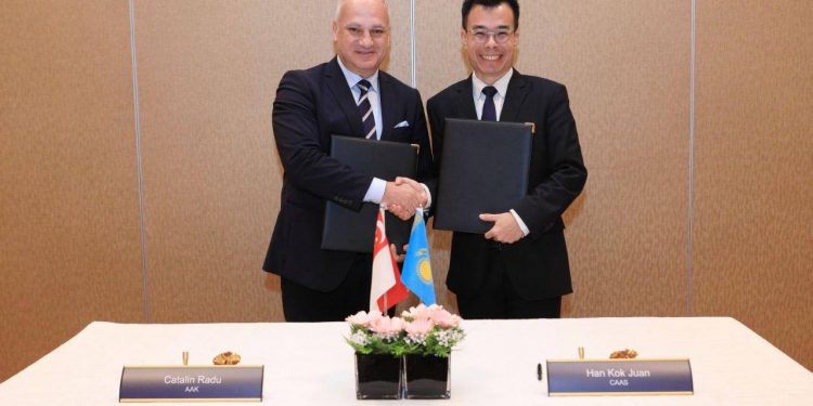 При согласовании Министерства транспорта Республики Казахстан Авиационная администрация Казахстана (AAK) и Управление гражданской авиации Сингапура (CAAS) заключили Меморандум о взаимопонимании для сотрудничества в области авиационной подготовки с целью поддержки развития авиационного сектора. Подписание документа состоялось на Авиационном саммите Чанги и было сообщено Optimism.kz. Документ предполагает сотрудничество по организации специализированных программ подготовки авиационных специалистов в Казахстане, проводимых Сингапурской авиационной академией (SAA), подразделением CAAS. Программы будут доступны для персонала гражданской авиации из Казахстана и европейских стран, охватывая области авиационной безопасности и управления. Это поможет Казахстану подготовить следующее поколение авиационных специалистов для поддержки планов по увеличению пропускной способности авиакомпаний и аэропортов, а также превращению страны в транспортный хаб Центральной Азии.