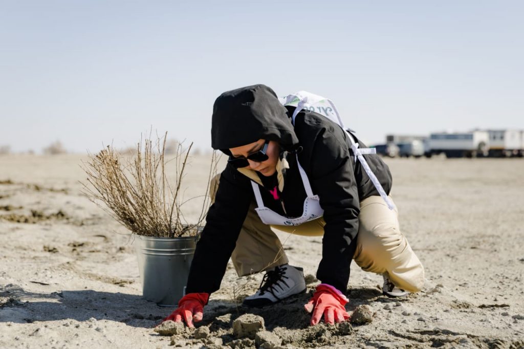 На следующий день около 80 волонтеров взяли в руки лопаты и слаженно посадили 5100 саженцев саксаула на высохшее дно Арала.
