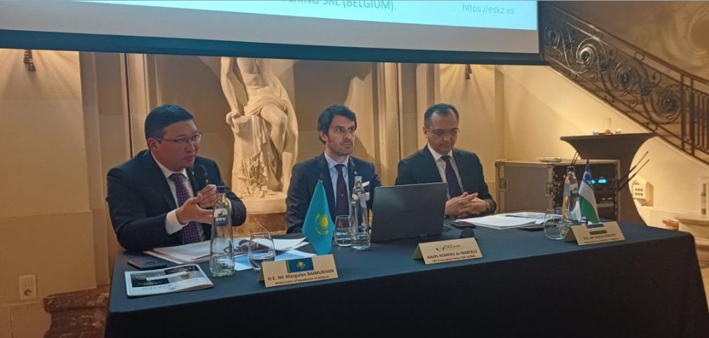 В Брюсселе была представлена инвестиционная привлекательность Казахстана, передает Optimism.kz. Посол Казахстана в Бельгии Маргулан Баймухан провел презентацию инвестиционных и торгово-экономических возможностей страны в Международном королевском клубе «Chateau Sainte-Anne». На мероприятии присутствовали более 40 представителей бельгийских и европейских организаций. Посол рассказал об инвестиционных преференциях, инструментах для иностранных инвесторов, развитии транспортно-логистического потенциала Центрально-Азиатского региона и возможностях поставок материалов в ЕС. М. Баймухан также подчеркнул готовность казахстанских компаний увеличить экспорт сельскохозяйственной и другой продукции в страны Европейского союза. На мероприятии был также присутствует посол Узбекистана Гайрат Фозилов, который представил инвестиционные и торгово-экономические возможности Узбекистана. В 2023 году товарооборот между Казахстаном и Бельгией составил 523,7 млн долларов США. Участниками Международного королевского клуба «Chateau Sainte-Anne» являются более 2500 представителей различных организаций. (Фото: Gov)
