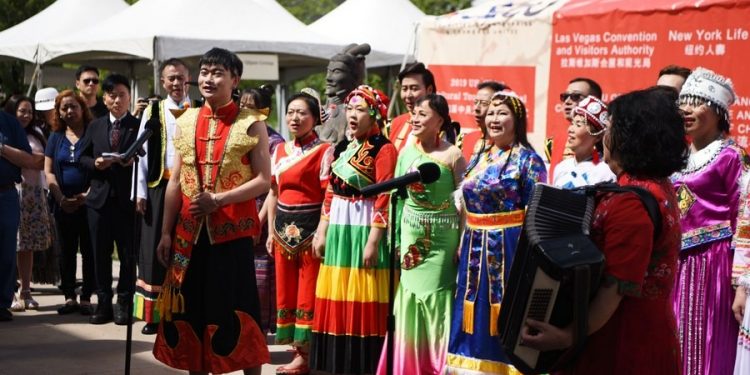 Китайские артисты из провинции Юньнань выступают на церемонии открытия Американо-китайского фестиваля культурного туризма в Лас-Вегасе, США, 10 мая 2019 года.