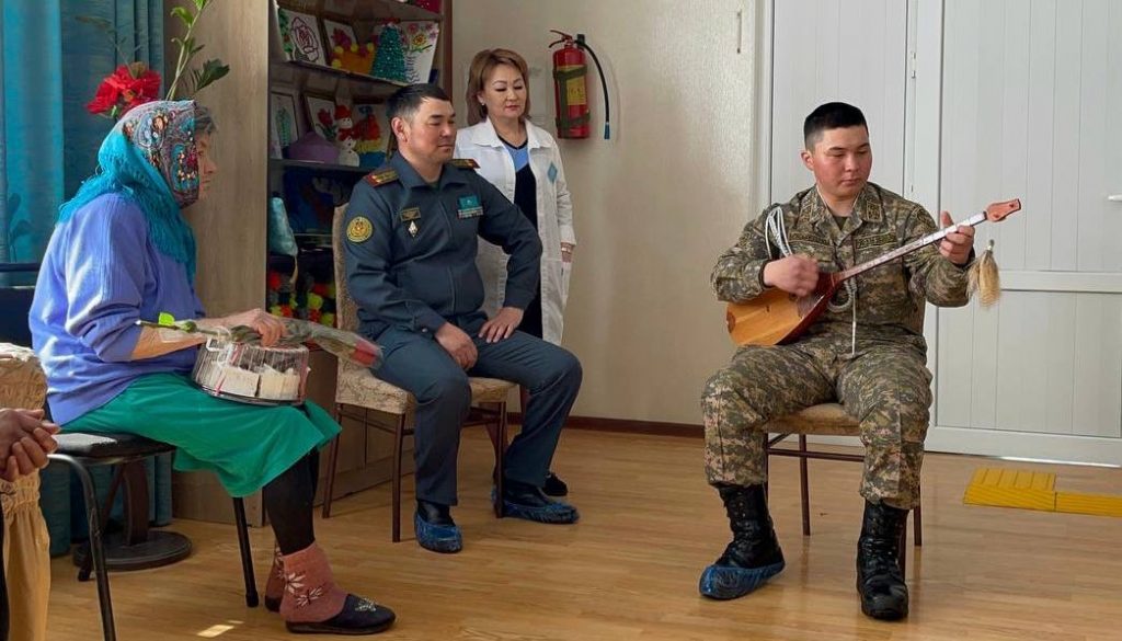 В День милосердия военнослужащие танковой бригады Гвардейского гарнизона посетили Центр предоставления специальных социальных услуг №7 Кордайского района Жамбылской области и подарили пожилым людям хорошее настроение. Военнослужащие вручили старикам подарки и провели небольшой концерт.