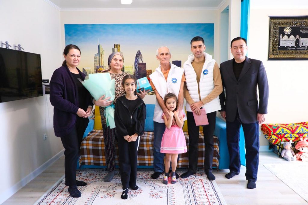 Заместитель руководителя Управления внутренней политики Астаны Ляззат Кусаинова и директор КГУ «Қоғамдық келісім» при акимате столицы Нурал Айдашев поздравили Халела Маслова, в семье которого 14 марта, в Көрісу күні родилась пятая дочь.
