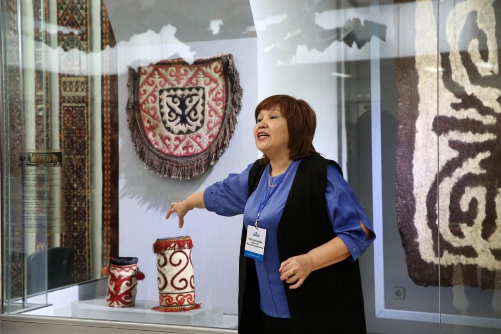 «В рамках декады Наурызнама сегодня экскурсия посвящена Дню семейных ценностей. Прикладное искусство отражает традиции и культурное наследие народа Казахстана. Наша молодежь и будущее поколение должны знать, что такое шанырак. В рамках выставки представлено более десяти гобеленов, ювелирные украшения в национальном стиле, войлочные, кожаные изделия, вышивка, ткачество, изделия из дерева», – рассказала руководитель отдела музейной педагогики и экскурсионного бюро Гульнар Жуваниязова.