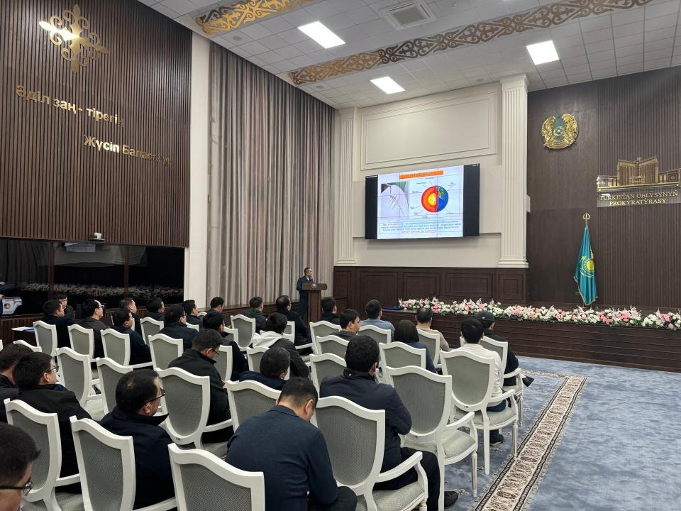 Обучение по действиям при землетрясении и пожаре было проведено сотрудниками Департамента по чрезвычайным ситуациям Туркестанской области в здании Прокуратуры. По окончании занятий была проведена практическая тренировка. К участию в мероприятии были привлечены 21 человек и 3 единицы техники от ДЧС. Фото: ДЧС Туркестанской области.