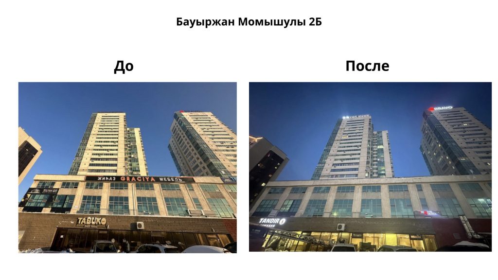 Напомним, сотрудники пяти районных акиматов проводят выездные мероприятия по разъяснению и демонтажу незаконной и несоответствующей дизайн-коду рекламы. С предпринимателями ведутся соответствующие беседы, выдаются буклеты о необходимости смены вывесок, которые не соответствуют дизайн-коду.
