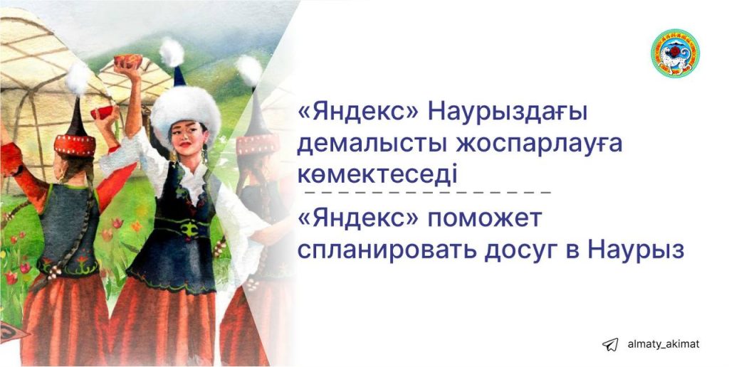 План мероприятий доступен на официальном сайте акимата Алматы и в телеграм-канале. Кроме того, список мероприятий можно будет увидеть в Поиске Яндекса: достаточно кликнуть на праздничное изображение — и появится кнопка «Список мероприятий». Расписание событий будет показываться также по запросам о празднике на русском или казахском языке: например, план на Наурыз или Наурыз қала жоспары.