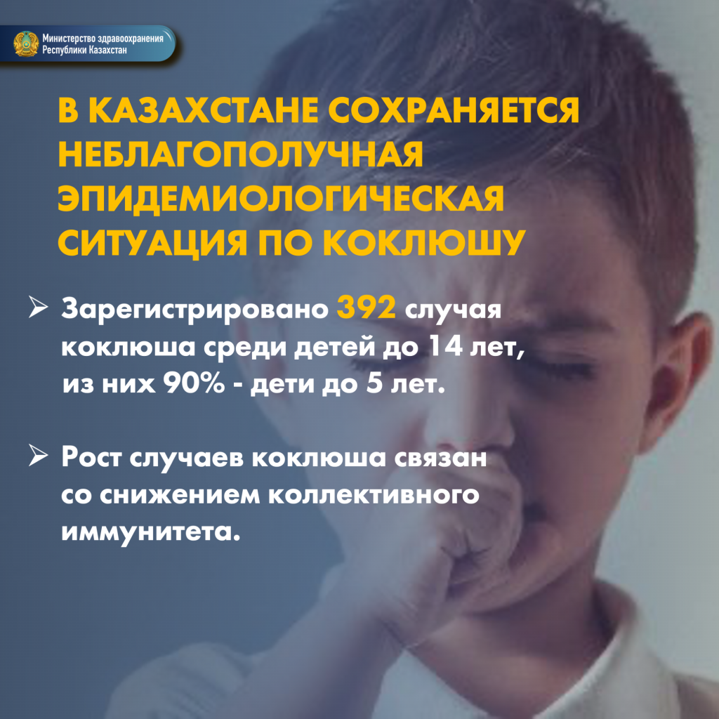В КАЗАХСТАНЕ СОХРАНЯЕТСЯ НЕБЛАГОПОЛУЧНАЯ ЭПИДЕМИОЛОГИЧЕСКАЯ СИТУАЦИЯ ПО КОКЛЮШУ