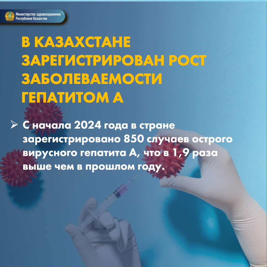 С начала 2024 года в стране зарегистрировано 850 случаев острого вирусного гепатита А, что в 1,9 раза выше чем в прошлом году.