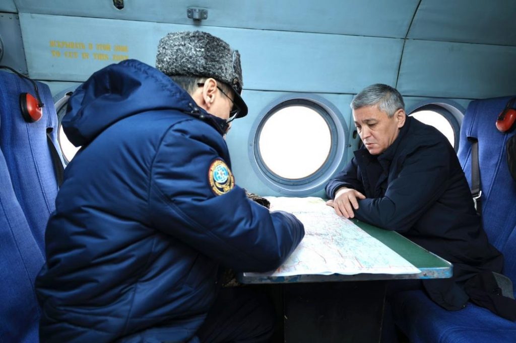 В настоящее время 60% территории Карагандинской области покрыто снегом, реки находятся в зимнем режиме. В то же время уже начались весенние паводки. Оперативный штаб круглосуточно отслеживает ситуацию, все организации работают в усиленном режиме. Аким области вместе с начальником ДЧС облетел паводкоопасные районы. По словам главного спасателя области, первые обращения о угрозе подтопления поступили 18 марта. Ситуация стабилизировалась, но на отдельных участках дорог происходят переливы. Ожидается повышение температуры воздуха и частичные осадки, что может повлиять на паводковую ситуацию. Жителей просят сообщать о рисках подтопления и скоплении талой воды по указанным телефонам. Фото: Акимат Карагандинской области.