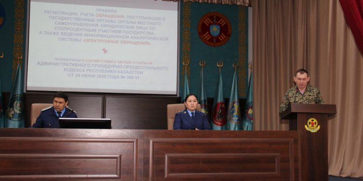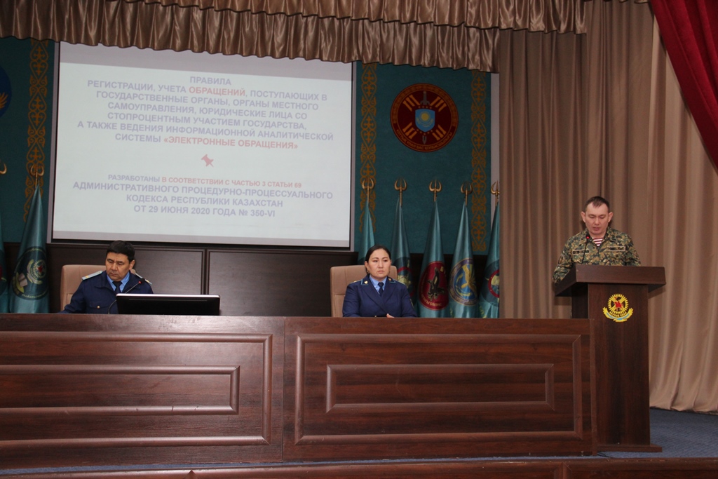 В клубе Главного командования Национальной гвардии прошло обучение на тему «Правила регистрации, учета обращений в государственные органы». Начальник отдела Военного Департамента Комитета правовой статистики и специальных учетов Генеральной прокуратуры РК Дархан Тогизбаев и Прокурор отдела Военного Департамента младший советник юстиции Гульжазира Исмаилова рассказали о законодательстве, касающемся обращений в госорганы, и обсудили особенности эффективного ведения электронных обращений. Мероприятие направлено на повышение эффективности госорганов и местного самоуправления. Обучение способствует укреплению правовой культуры среди военнослужащих Национальной гвардии и развитию диалога между гражданским обществом и военными. Полученная информация важна для профессионального роста и помогает решать задачи в области законодательства и военной службы. Фото: Пресс-служба Национальной гвардии РК.